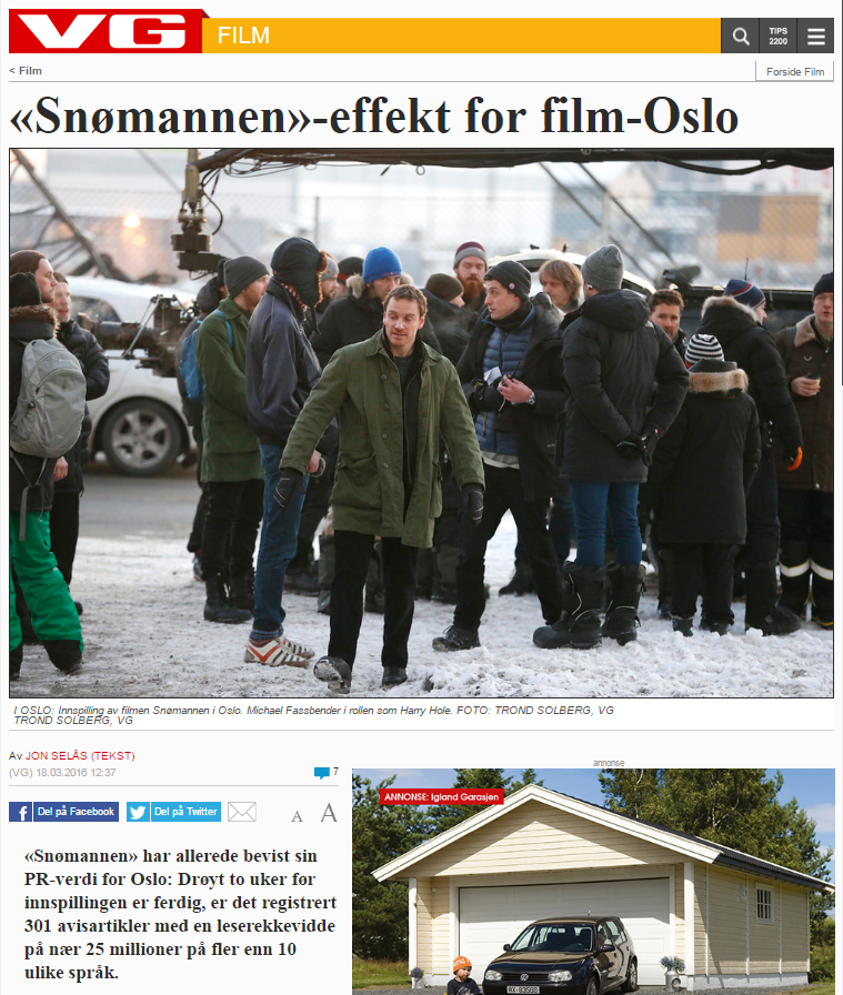 Når stadig flere norske filmer, regissører og historier tiltrekker seg internasjonal oppmerksomhet, vil det lokke til seg et voksende antall utenlandske filmer som ønsker et samarbeid på norsk jord. Historiene om vikinger blir til storstilte tv-serier, Matt Damon og Ben Affleck ønsker å filmatisere Roald Amundsens kappløp til Sydpolen og Thomas Alfredson holder i disse dager på å filmatisere Jo Nesbøs Snømannen rundt om i Norge.